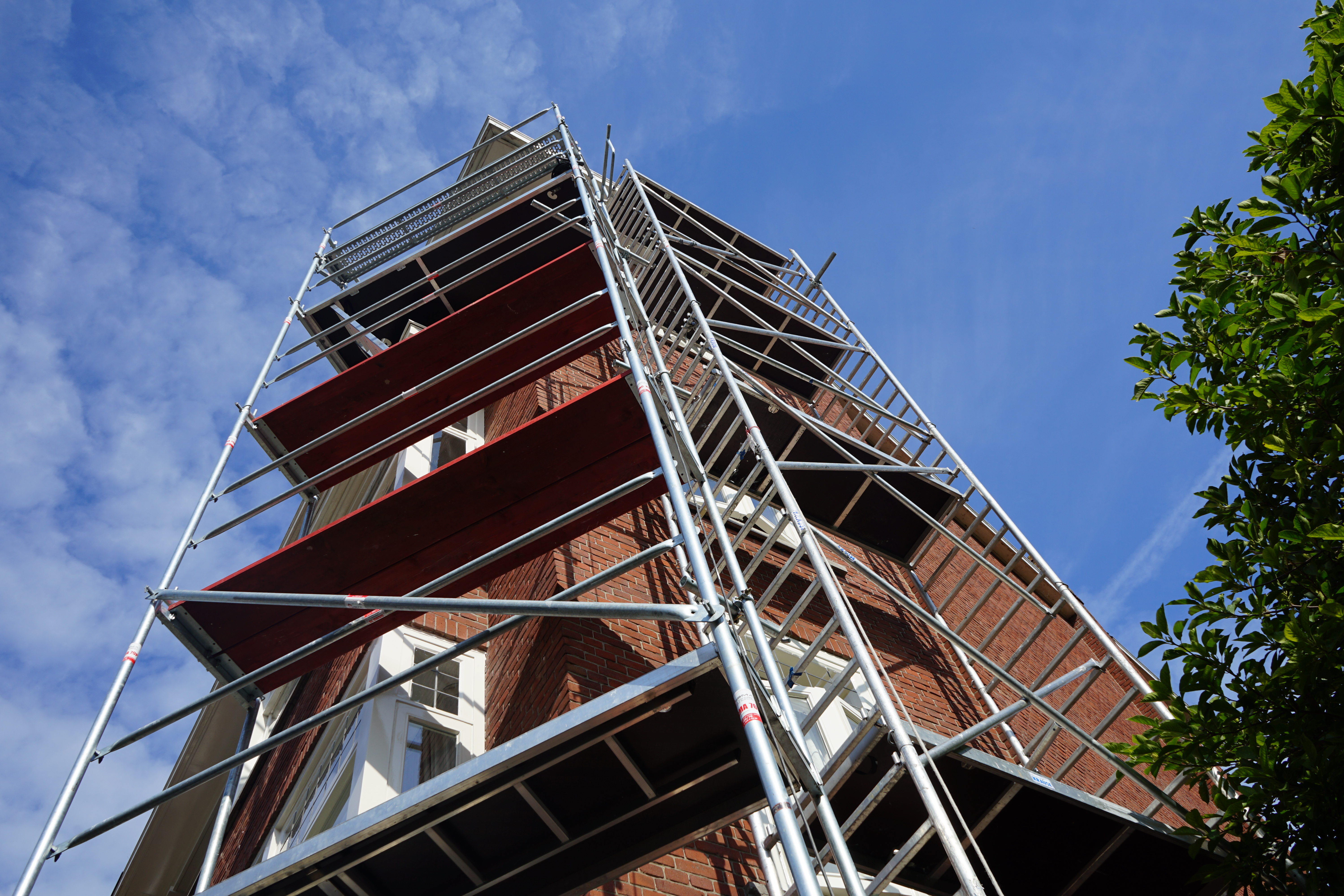 - Steiger(s) opbouwen en demonteren incl. reparatie van voegen na plaatsing van steigerankers;